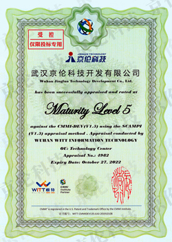 热烈庆祝武汉京伦科技开发有限公司(下称“京伦科技”)于近日通过CMMI 5级资质认证。此次通过CMMI 5级认证,标志着京伦科技在组织能力、软件研发能力、项目管理能力、方案交付能力等方面达到国际领先水平。