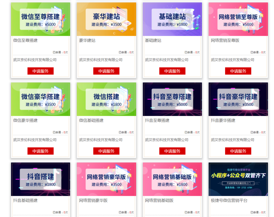 抖音类套餐:抖音搭建、抖音豪华搭建、抖音至尊搭建